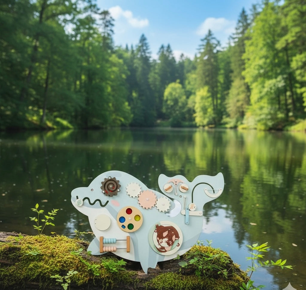 Montessori Vægpanel – Krokodille Busy Board (Salvie grøn)